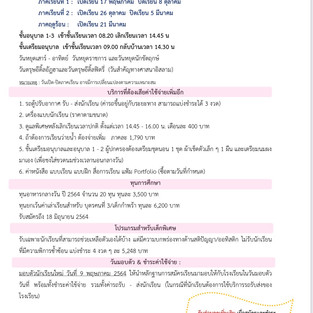 ระเบียบการรับสมัครนักเรียน ปีการศึกษา 2564